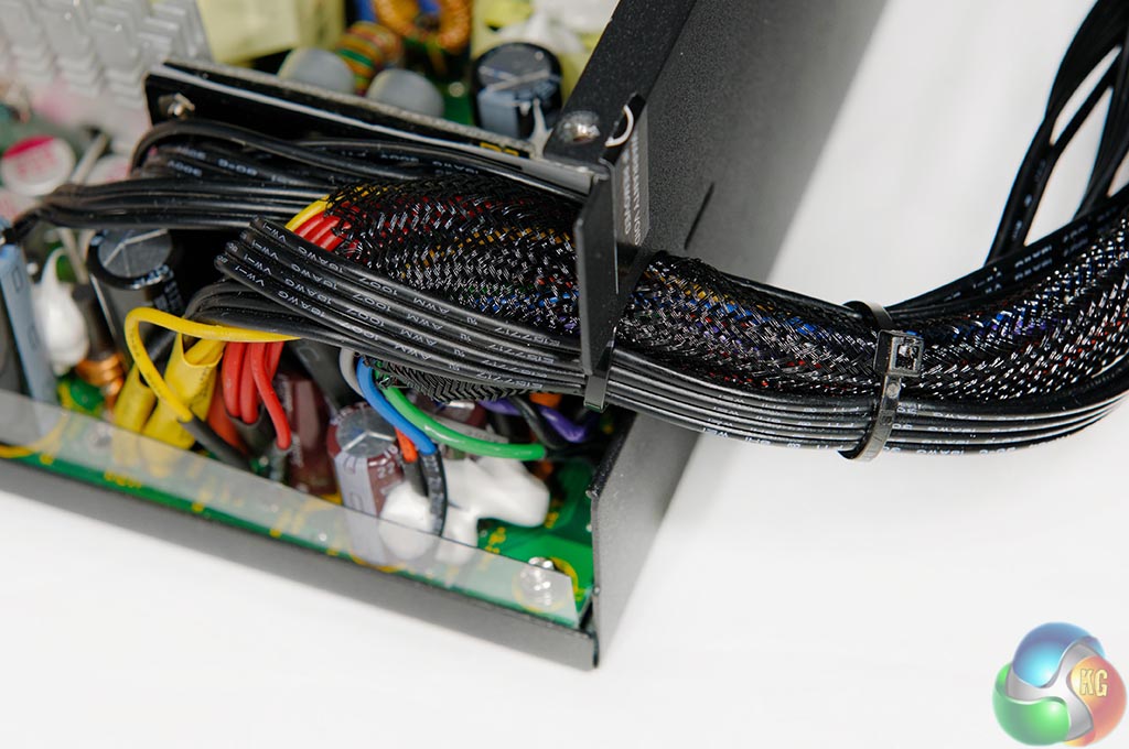 The non modular cables run into the chassis and are tied down in several places to protect them against fraying.