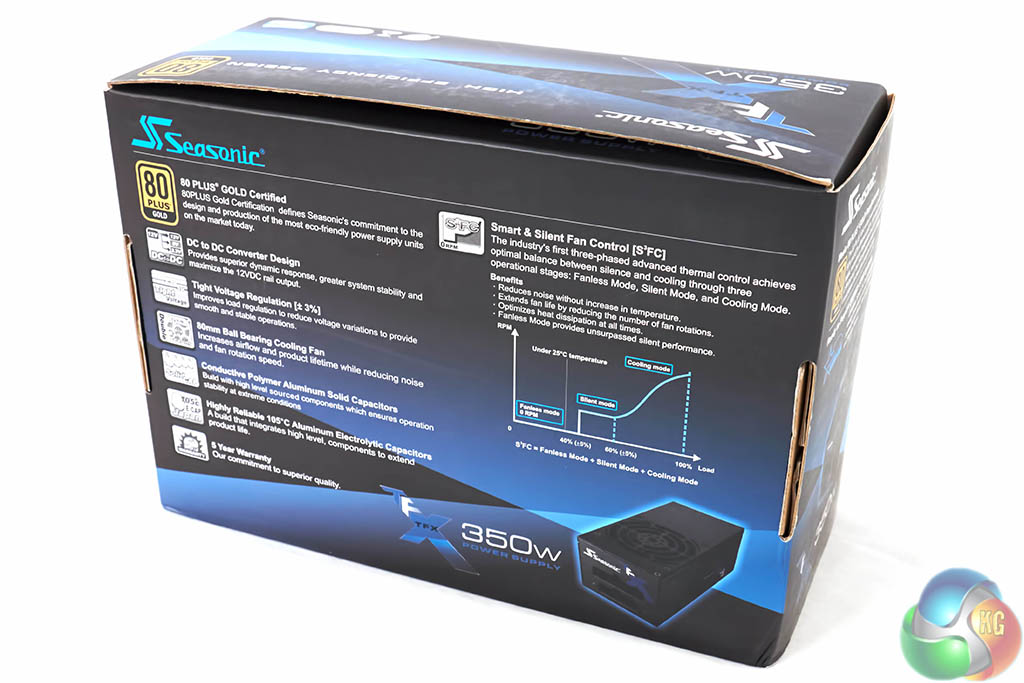Some technical details are shared on the rear of the box, shown above. Of note? The TFX 350W uses a ‘Smart & Silent Fan Control (S3FC)'. At 40% load or when the temperature is below 25c the fan will disable completely.
