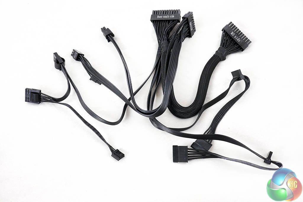 In a rather unusual manner all the cables are connected via a thick dual header cable which plugs directly into one side of the power supply (see image above).