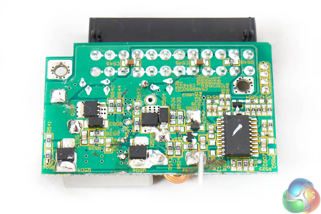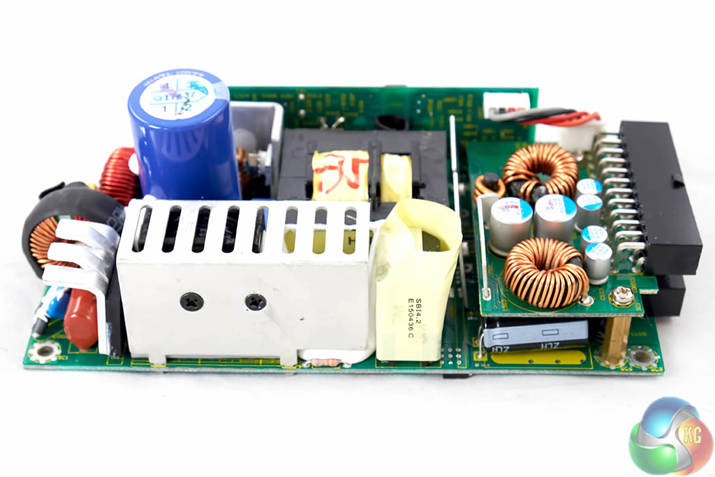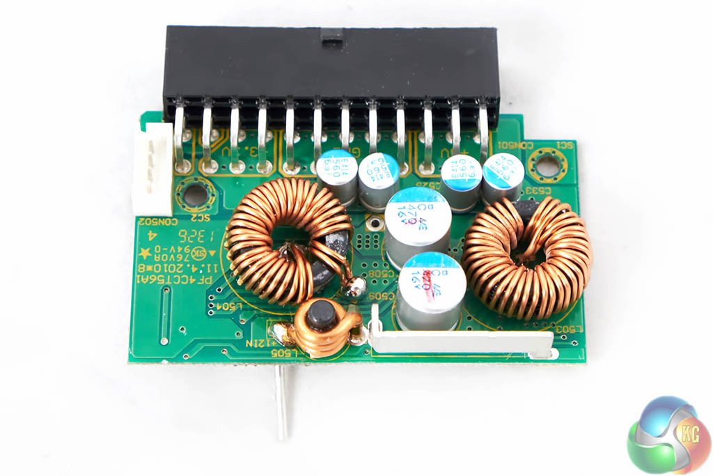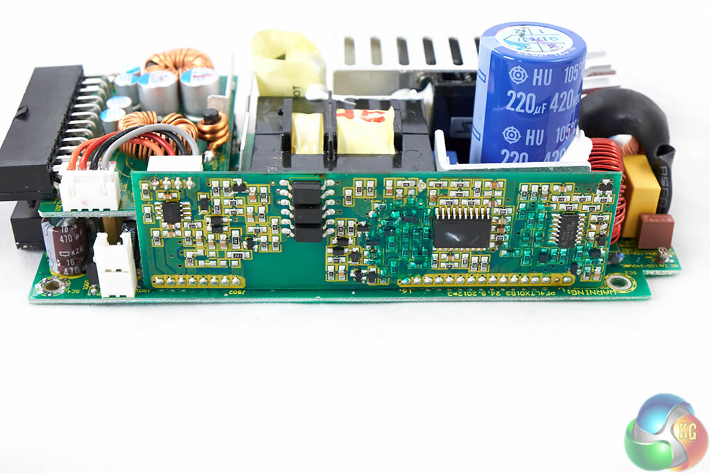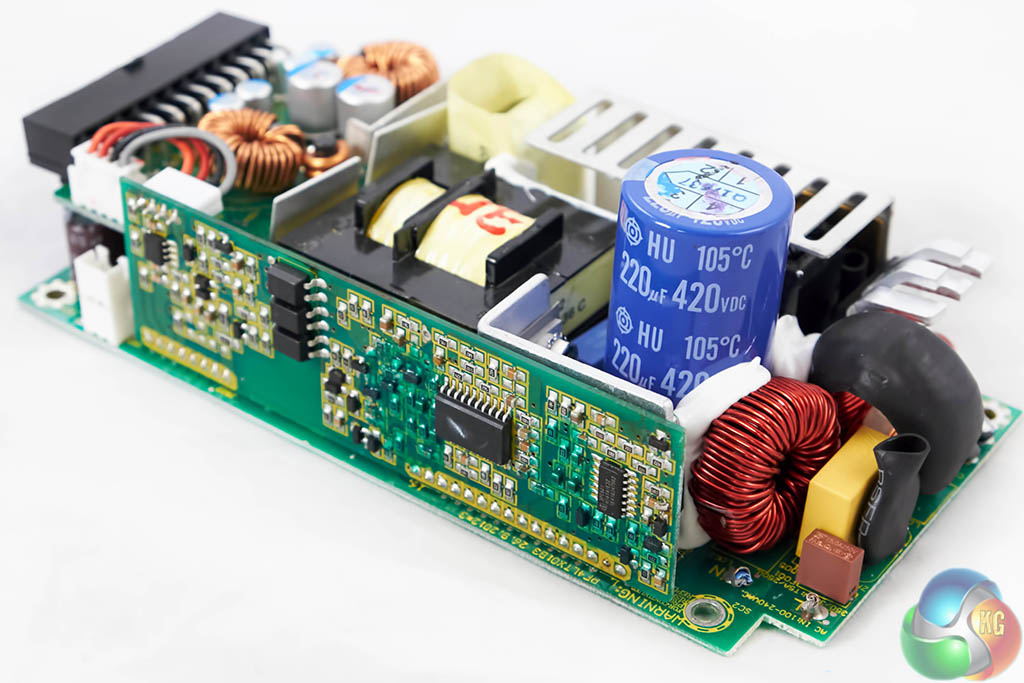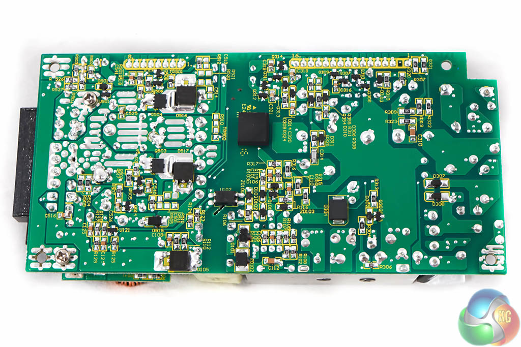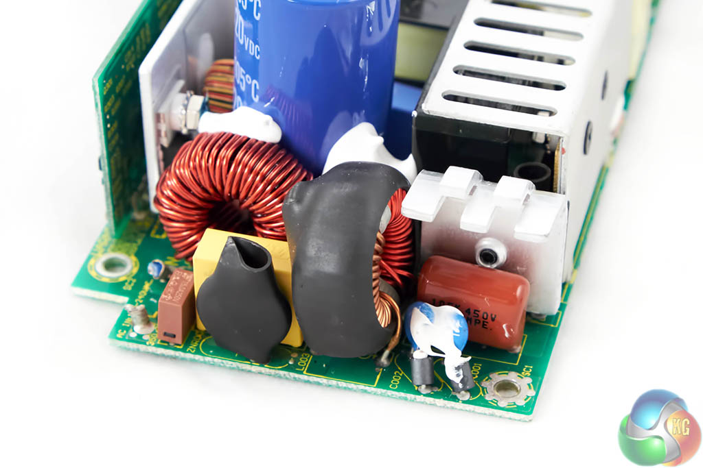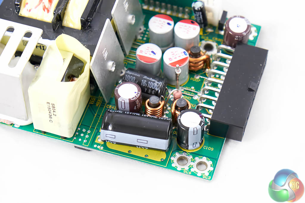 The soldering quality is high and we didn't notice any issues worth mentioning. Seasonic are using a 105c Hitachi Japanese primary capacitor rated 220uF, 420V. Secondary capacitors are Nippon Chemi Con.