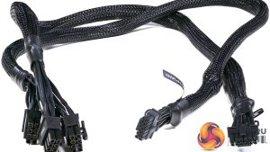 Considering the added performance bonus of these high-power units, we included a PCIe 5.0 12VHPWR connector cable harness in the packaging box. This enables: