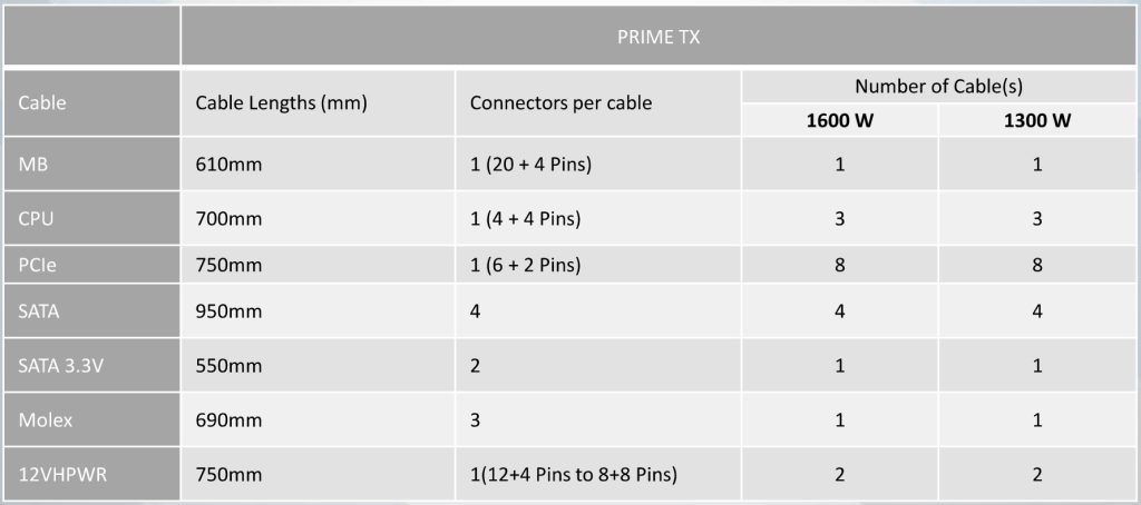 PRIME TX-1600 / PX-1600 conforms with ATX 3.0 and PCIe5.0 up till 1000 W