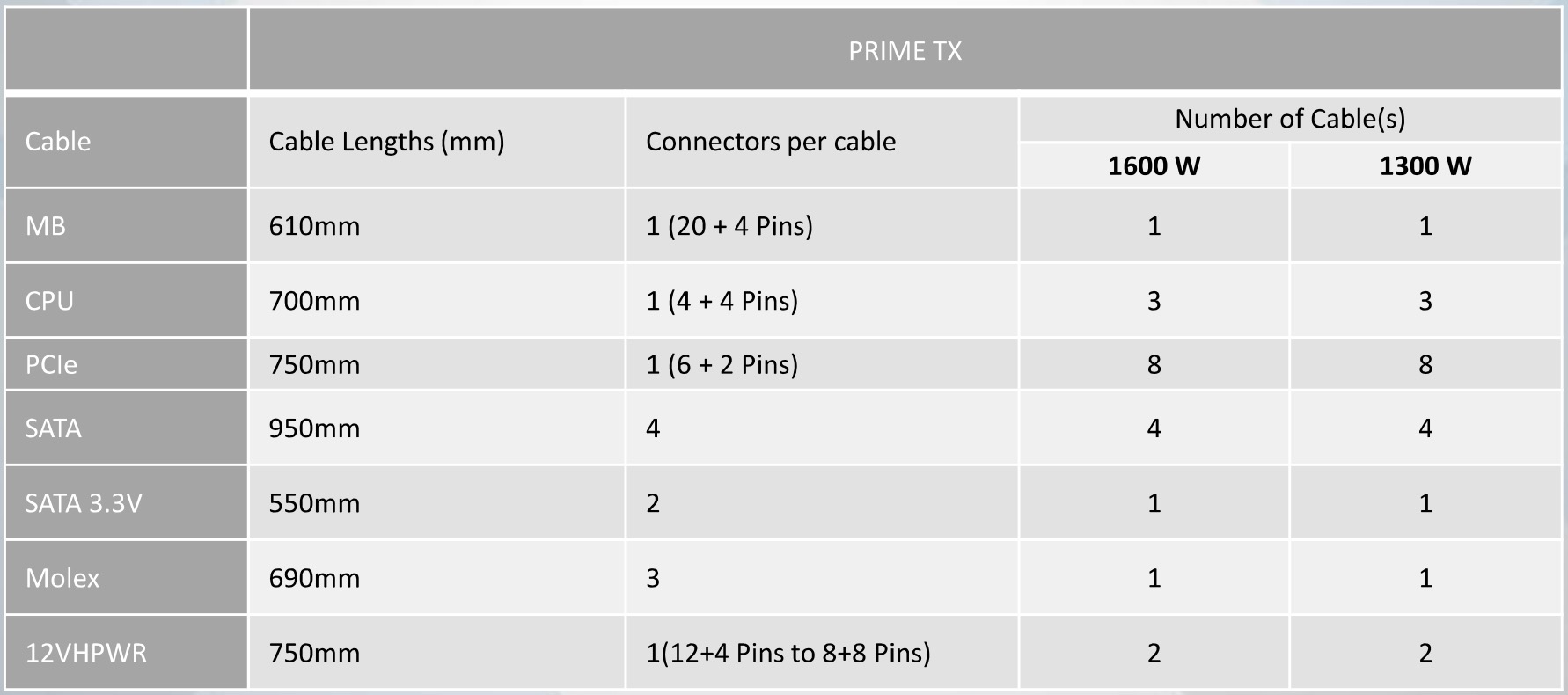 The PRIME TX-1300 can support up to 300 W AIC.