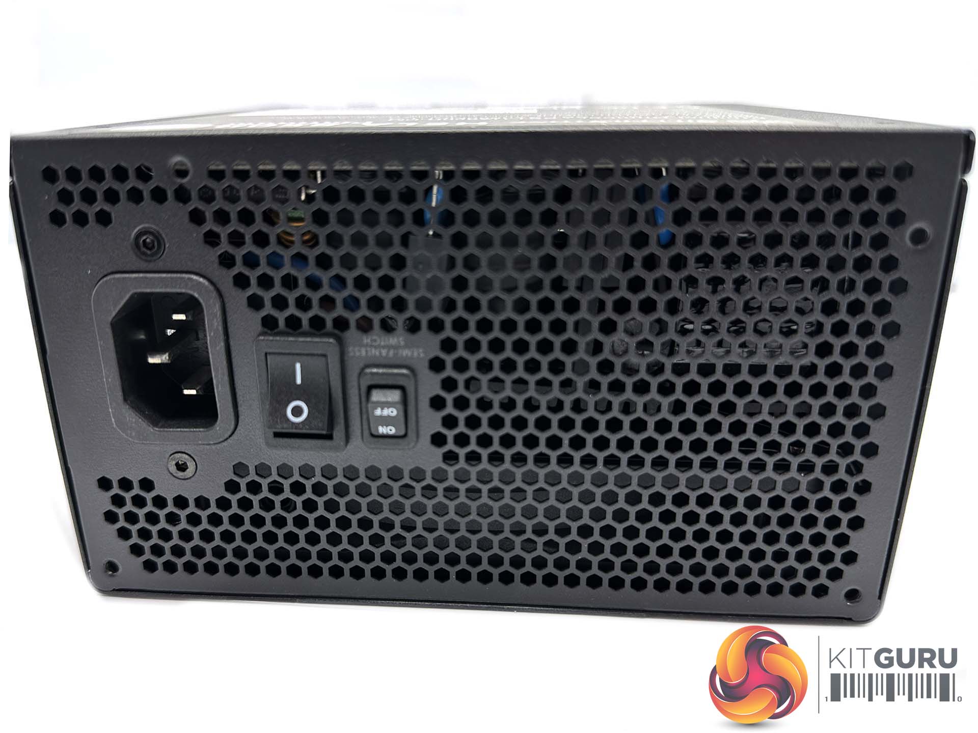 One side of the power supply is vented with a power switch and cable connector. There is also a ‘semi fanless switch' which allows the fan to remain off, until a specific load/temperature is reached. This is ideal for keeping noise levels lower when the power demand is less.
