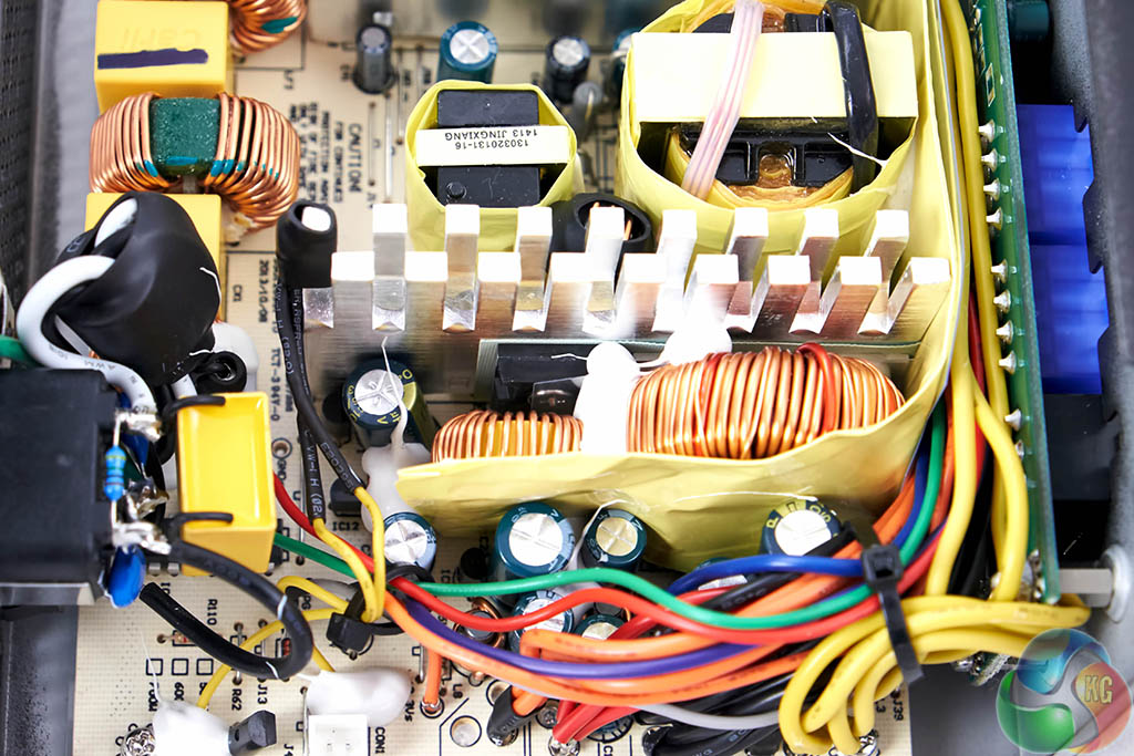 We can tell this is a budget oriented power supply by some of the design considerations. It is slightly disappointing to see a Chinese TEAPO 85c capacitor used in the primary stage (rated 400V 470uF). A lot of secondary capacitors are also 85c Chinese branded which always raises a little flag for me concerning long term durability.