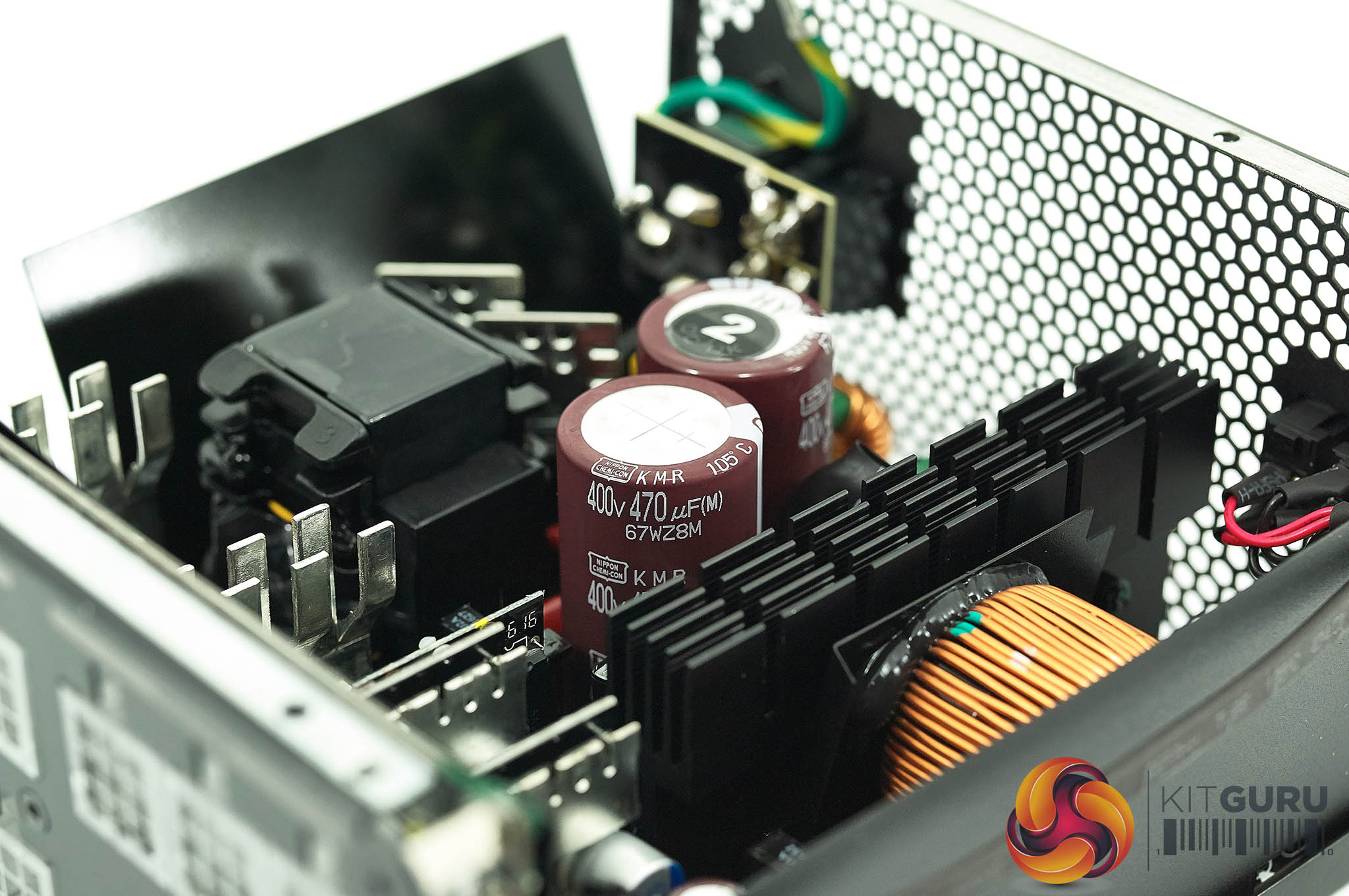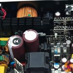 The primary stage is served by two 105c rated Japanese Nippon Chemi Con Capacitors (KMR Series) – both rated 470uF 400V for a total of 940uF.