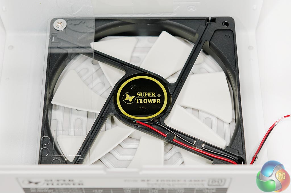 The 140mm fan has a Super Flower badge in the middle, however underneath it is a Hong Hua ball bearing unit.
