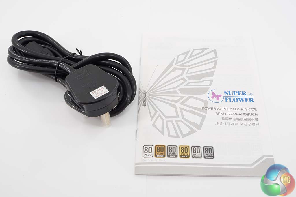 Inside, along with the power supply is a regional specific power connector and a little user reference sheet masquerading as a user manual. The user manual does not appear to have been updated for this model as there is mention (along with pictures) of a ‘Thermal Control System' which is a switch to toggle an ECO fan on/off system. This switch is not available on the Platinum King model.