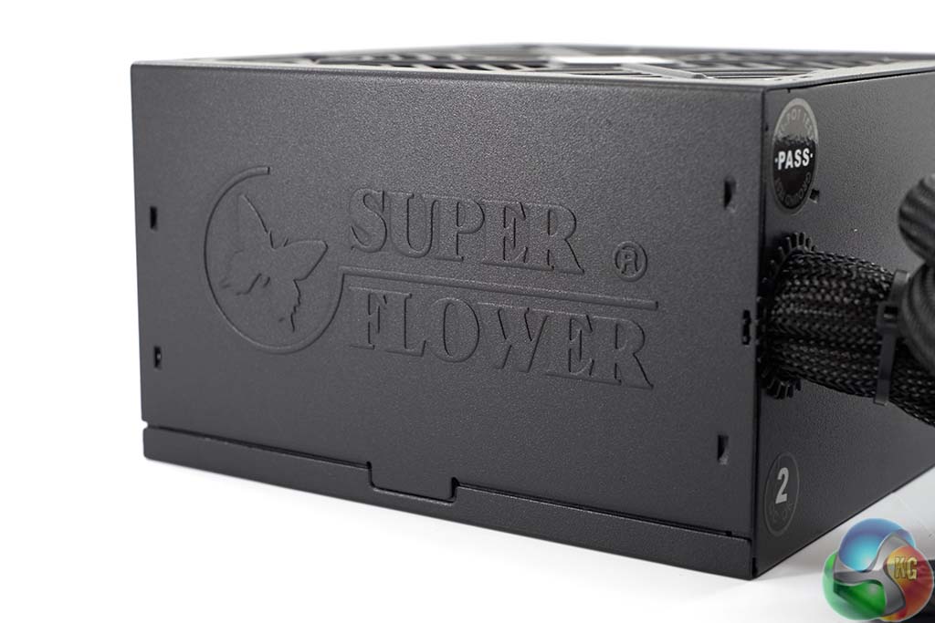 The Superflower Platinum King 650W is a very basic looking power supply with an embossed logo on the side panel.