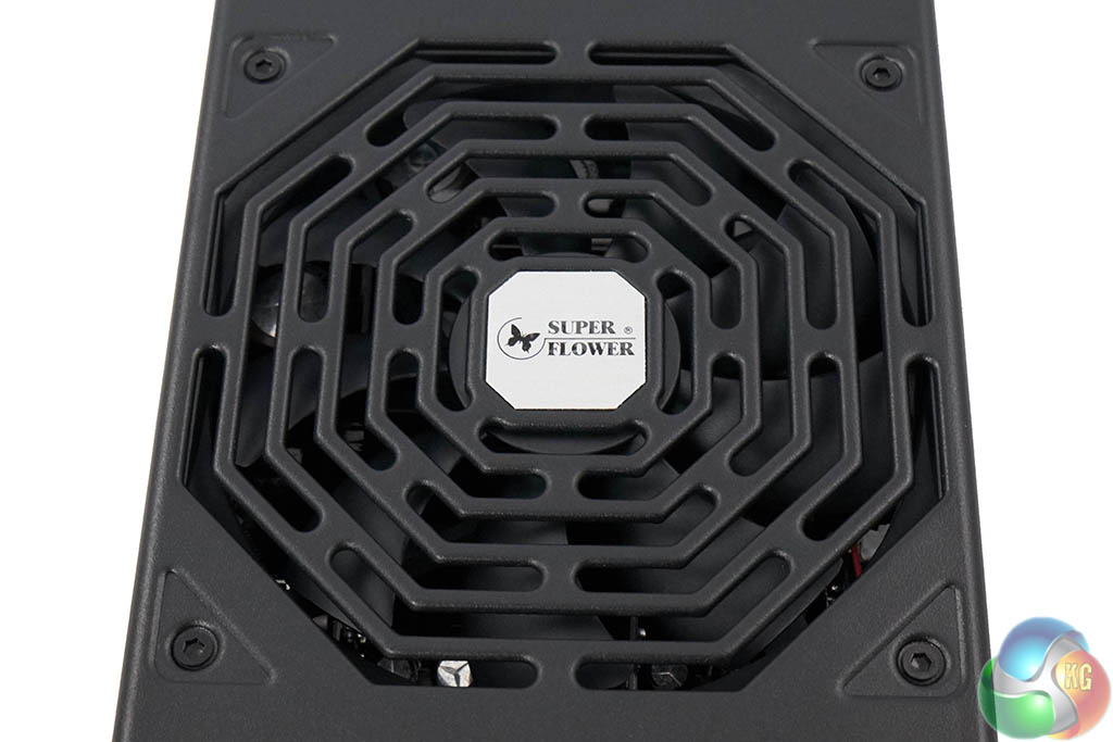 The large fan is hidden underneath the thick grill air flow system, which is cut into the chassis itself. The Super Flower logo takes pride of place in the middle of the fan section. We will take a closer look at the fan shortly.