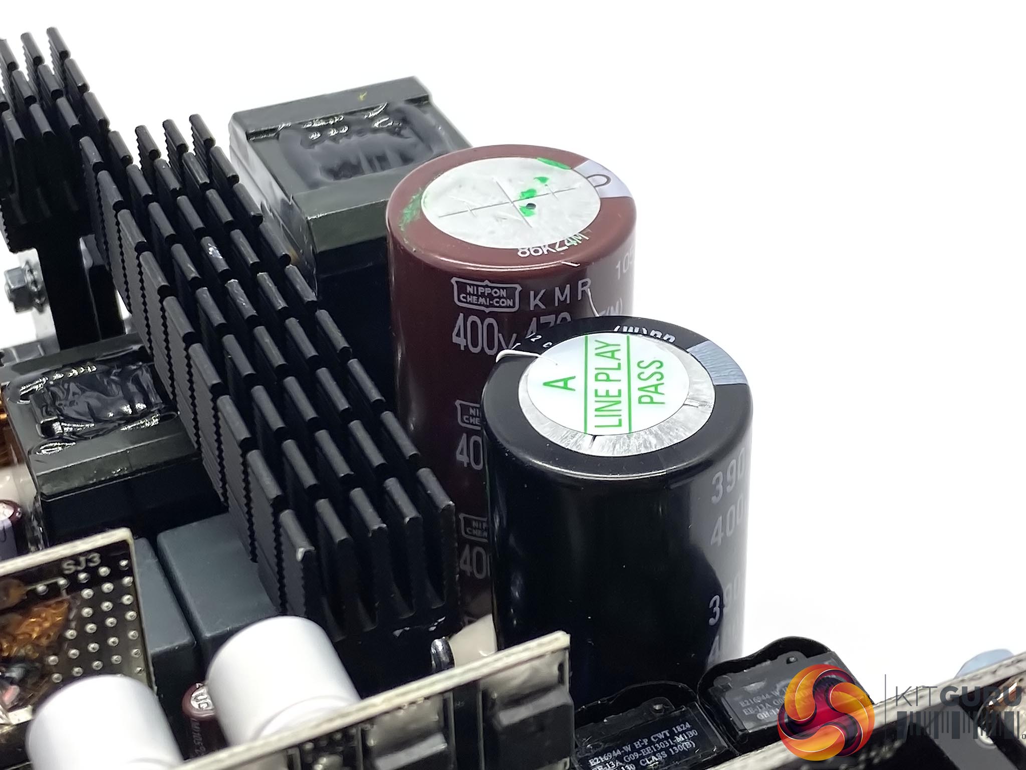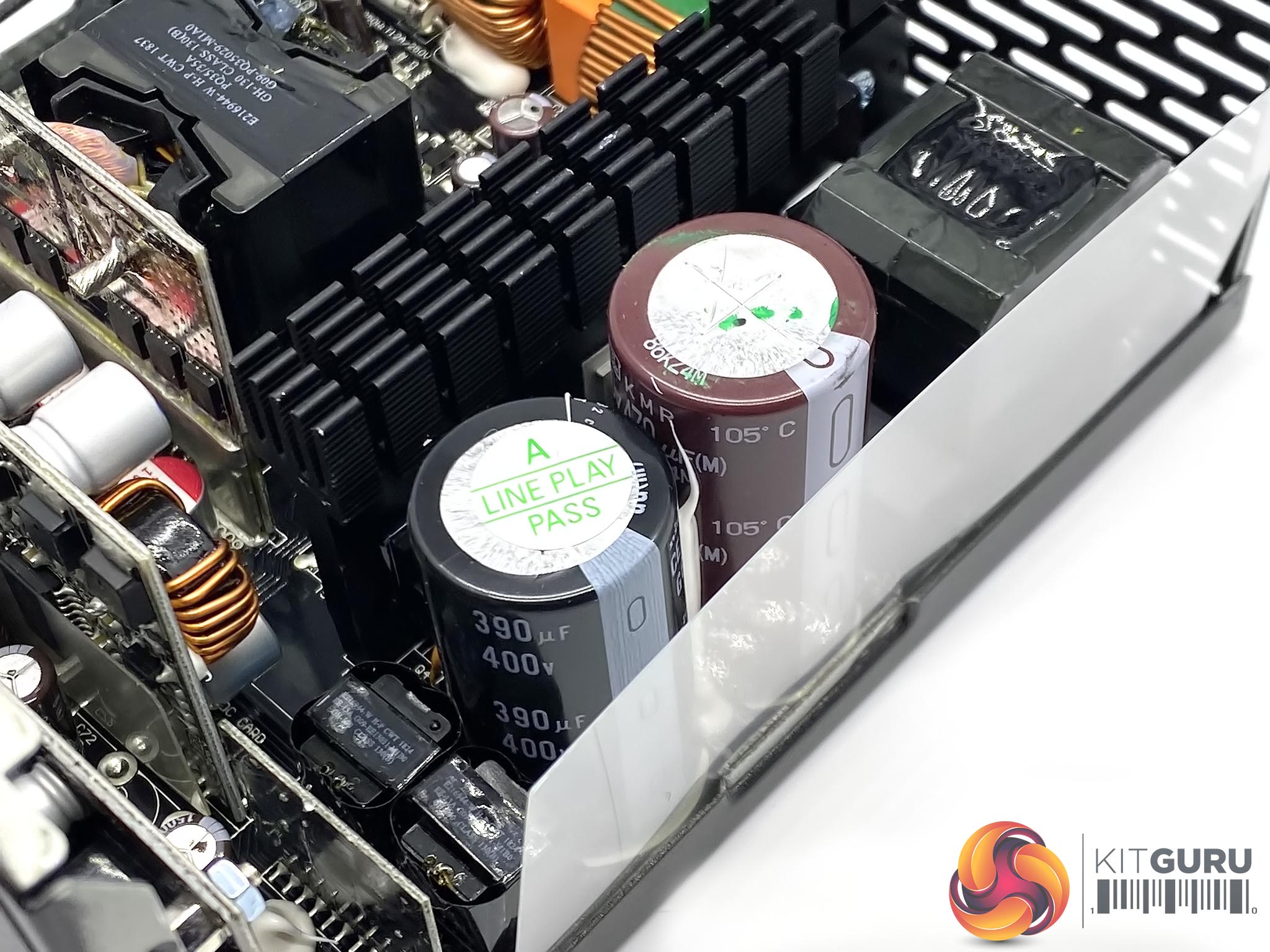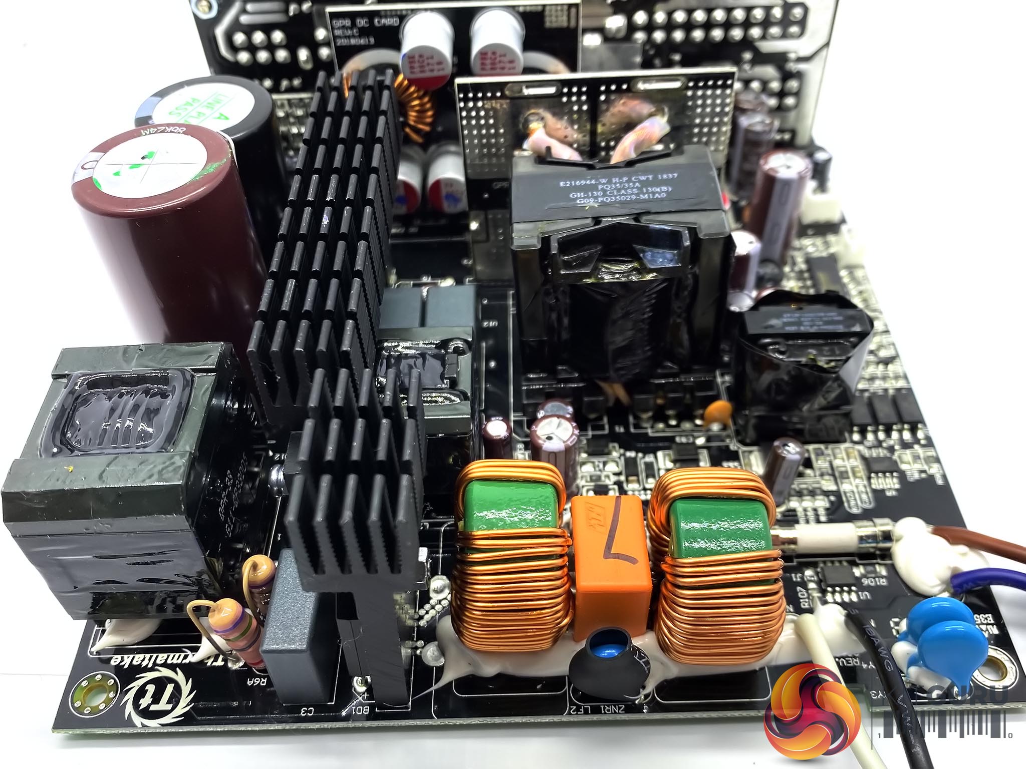The primary hold up caps are both high grade 105C Japanese models from Nippon Chemi Com (KMR series) and Nichicon – rated 400v 470uf and 400V 390uF respectively. Companies will often mix and match capacitors from specific families depending on what is available. This does not pose any concerns – it is good to see Thermaltake ensuring that high grade capacitors are being used throughout.