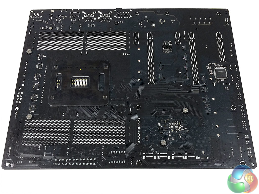 Underneath the motherboard all heatsinks are secured with standard Philips screws meaning easy removal for cleaning or installing waterblocks. There aren't any PCB reinforcement plates underneath as ASRock likely believes that the 8-layer PCB negates the need for this.