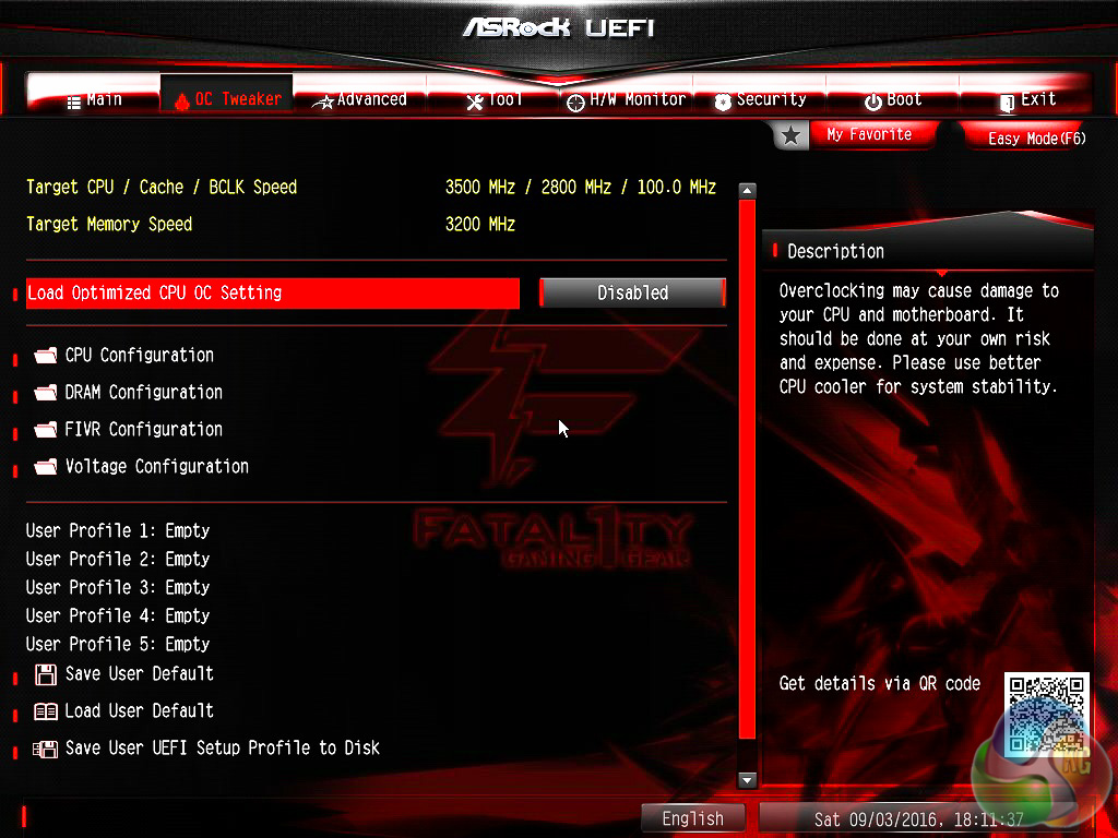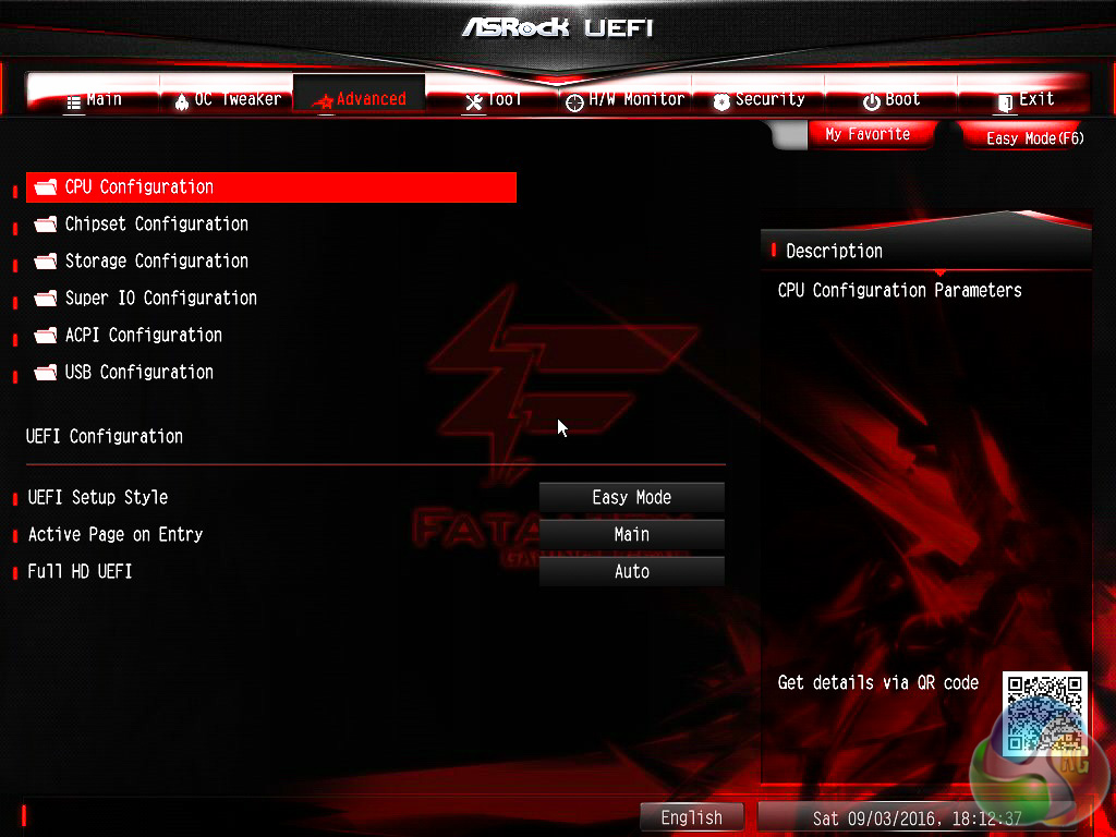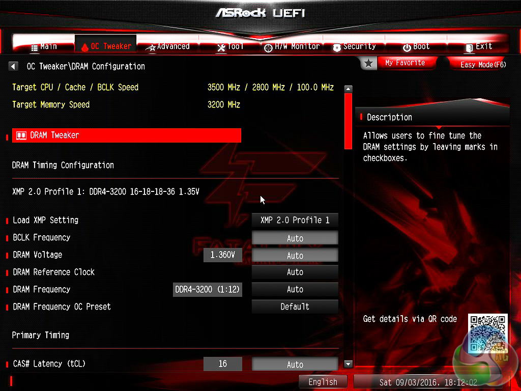 OC Tweaker is the area in which most time will be spent since this holds key CPU and DRAM options. CPU Configuration and DRAM Configuration tabs allow for frequency and general settings changes.