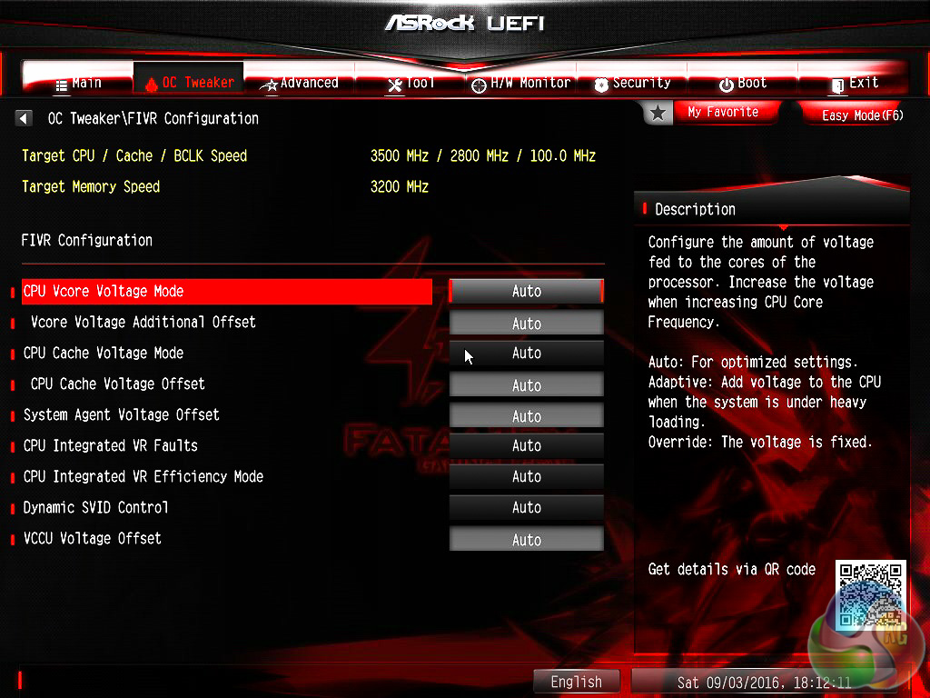 FIVR Configuration and Voltage Configuration facilitate changes to voltages, Load Line Calibration and other key parameters.