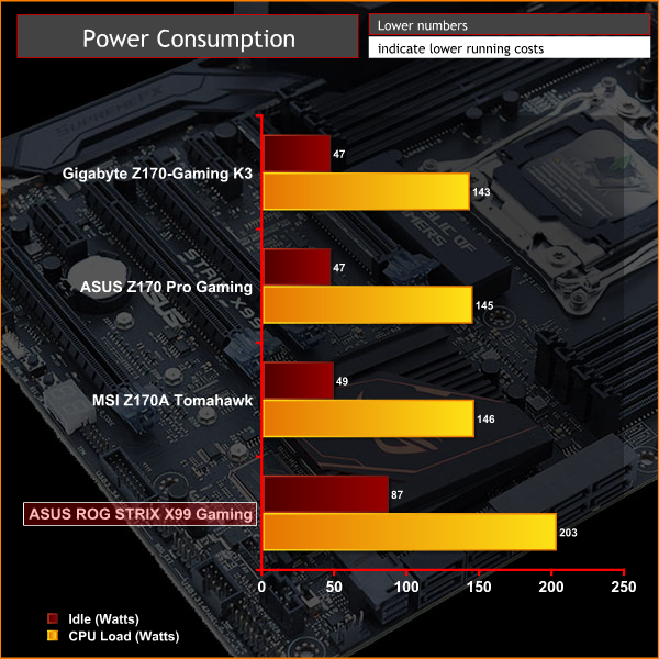 Power consumption is a little on the thirsty side but it can be reduced by trading off for less aggressive clock speeds. For instance sticking to default Intel Turbo behaviour will see idling closer to 50-watts and loading around 140-watts. However, in the instance of that you're looking at a load clock speed of 3GHz with a correspondingly lower voltage, compared to the 3.5GHz enhanced turbo clock speed we benchmarked with.