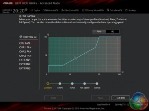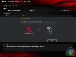 There are a number of utilities that launch in pop-up windows over the UEFI environment and these include the Q-Fan tuning utility and the EZ Flash update tool which will allow you to update the UEFI to the latest version through a downloaded file stored on a storage drive (USB or SATA) or through direct internet connection from the UEFI to the ASUS download server.