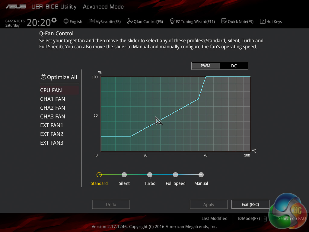 The advanced tab has all the other advanced tweaking and tuning options that aren't CPU or memory related, anything related to the USB, networking or other storage controllers is likely to be found here. The monitoring tab is where you can see all temperatures and fan speeds, as well as set fan speeds and profiles.