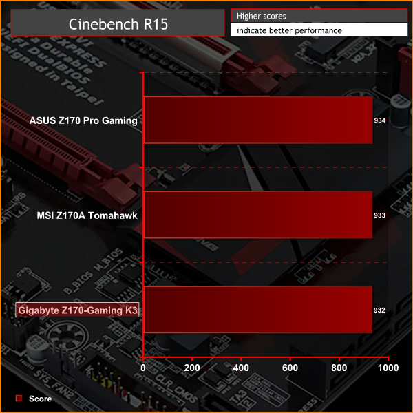 CPU performance is within margin of error for all tested Z170 motherboards once you standardise for different Turbo mode behaviour tweaks the vendors use. Most will automatically enable various turbo enhancements that increase the average operating frequency of Intel's CPUs, this is often implemented with XMP profiles. This can give the impression some motherboards are “faster” than others when in reality they just overclock the CPU more. In our testing we found that Gigabyte doesn't automatically implement all-core turbo when enabling the XMP profile, but we standardised for this by adjusting the multiplier hence all the results appear equal.