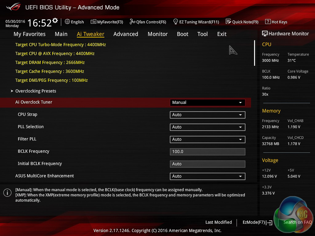 ASUS has a baked-in Broadwell-E 10 core preset, under overclocking presets, which opts for the following configuration: