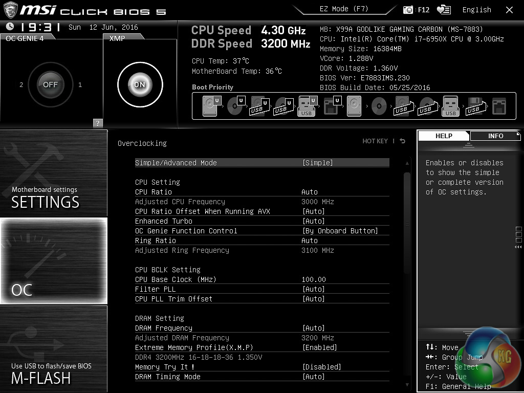 MSI attempts to offer a more intuitive advanced mode with further “difficulty” filtering in the OC tab. You can choose between a simple layout or an advanced one, the main difference being the simple layout hides the more obscure functions.