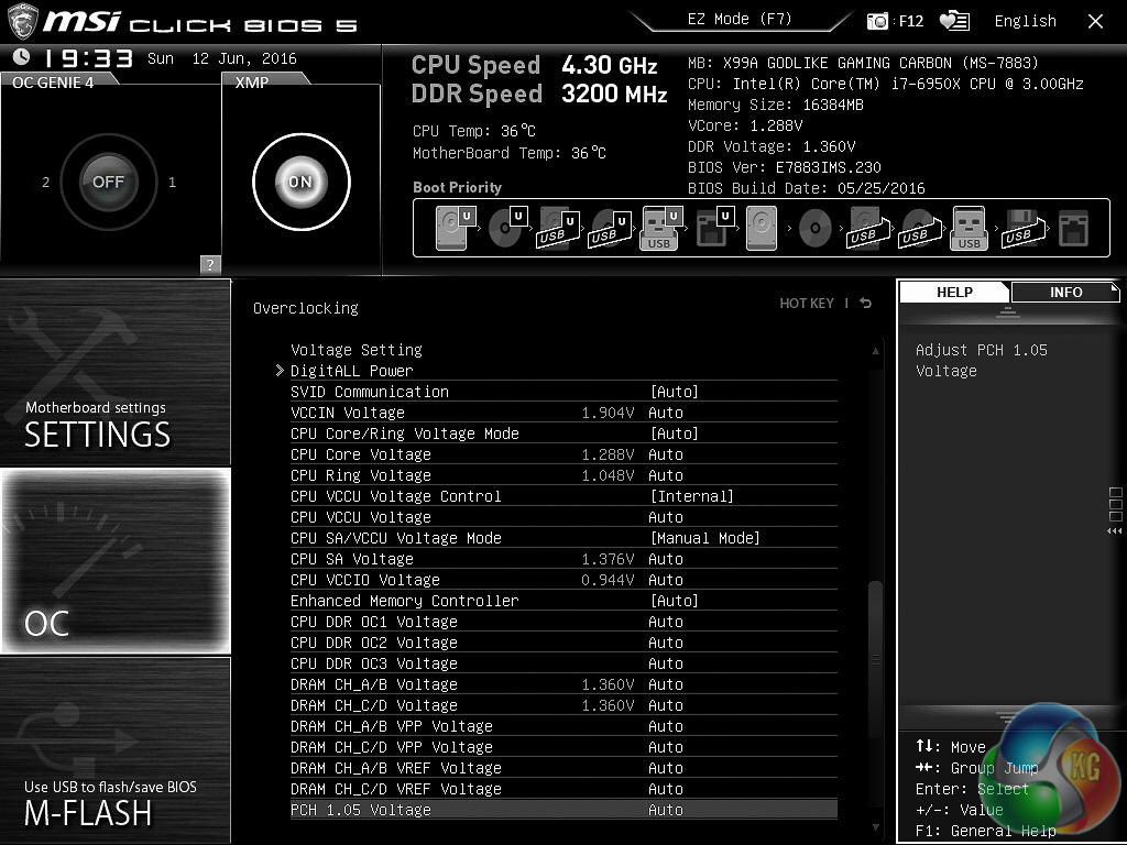 In light of our recent review of the ASUS ROG STRIX X99 Gaming, we're pleased to see MSI only enables a 3.5GHz all-core overclock when you enable XMP – as opposed to the power-hungry 4GHz profile ASUS applies with XMP.