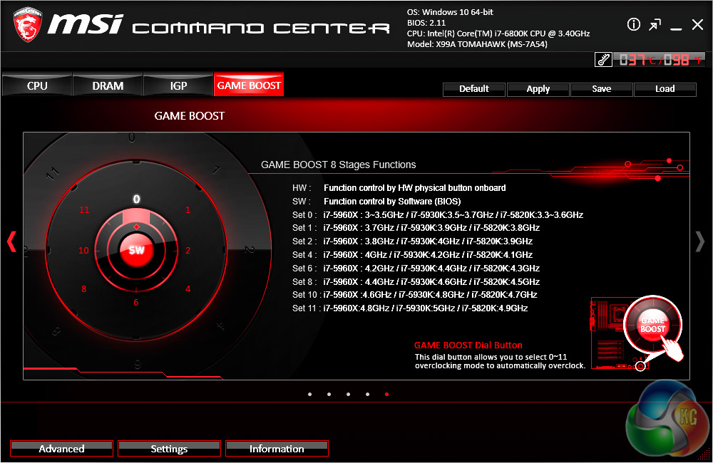 Strangely the Game Boost function had no profiles listed for our i7 6800K or other Broadwell-E CPUs. We imagine MSI has yet to update this part of the software to account for this, nonetheless the i7 6800K is quite similar to the i7 5820K so you could still use these profiles interchangeably.