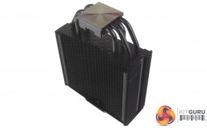 With the cooler out of the box, we can get a better look at its construction. Firstly, the all blacked out aesthetic looks really clean, and certainly very premium. This coating also has ceramic particles mixed in so the fact that the cooler is painted shouldn’t hinder heat transfer. In terms of dimensions, the Dark Rock Slim comes in at 50 x 127 x 159.4 mm, and when compared to similar coolers like the Cooler Master Hyper 212 at 54.6 x 120 x 158.8 mm, they are basically the same size, with the Dark Rock Slim just a little taller and wider.