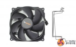 The included fan is a be quiet! Silent Wings 3 120mm PWM fan. This is the exact same 120mm fan you will find included with the Dark Rock Pro, and be quiet! suggests that its inclusion should offer almost completely silent operation, with total noise output of the fan rated for only 23.6 dBA, even when running at 100%. The fan cable is braided too which is great to see for an overall cleaner aesthetic.