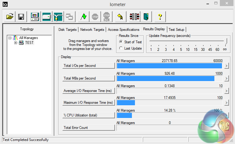 Toshiba OCZ quote random 4K read/write figures for the 512GB drive at up to 190,000 IOPS and 120,000 IOPS respectively but even these spectacular figures seem a more than a bit conservative as under test conditions the drive we have managed 172,358 IOPS for writes and a colossal 237,178 IOPS for reads. Simply stunning performance.