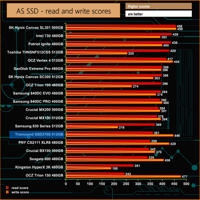 The AS SSD benchmark uses incompressible data to test drives. On the whole the Transcend/ Silicon Motion controller deals with it well, the 4K write performance being particularly strong , however the same can't really be said when it comes to 4K reads.