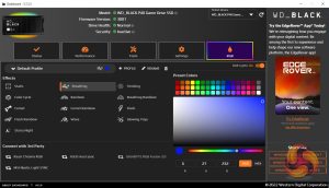 One page of SSD Dashboard is dedicated to controlling the RGB lighting system which has 13 basic pattern effects with options to tinker about with the colours being used. It is also compatible with the most common motherboard RGB systems out there; MSI’s Mystic Light Sync, Asus’ Aura Sync, Razor Chroma RGB and Gigabyte’s RGB Fusion 2.0.