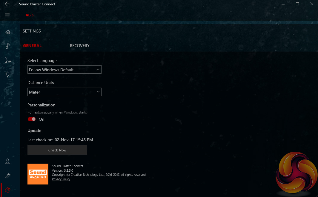 One last area to touch on is the playback settings. The AE-5 actually supports up to 32-bit 384Khz playback, something which is frankly overkill for a gaming-centric PCIe sound card. For reference, a CD recording would be 16-bit 44.1Khz, so you are unlikely to get the full benefit of the 32-bit 384Khz playback ability of the AE-5. It's not a bad thing that such a high sample rate is supported, it is just unlikely that typical users would make use of it.