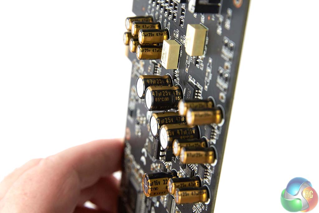 From a distance you may be fooled into thinking that you are looking at a graphics card. The outer enclosure is actually an EMI shield to help block out interference inside the chassis. It also doubles up as a protective shield for the capacitors and other sensitive components. The orange owl ‘eye' lights up when powered on, but as the card is likely going to be installed horizontally into a PCI E slot, you are probably never going to see it.