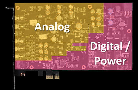 The ASUS Strix RAID Pro 7.1 is comprised of four PCB layers, with 2 layers of ground incorporated to separate digital and analog signal interference. Asus say the design is no compromise with a ‘no cross over rule'. They are using linear LDO (low drop out) regulators and the power source is independently supplied to DAC and OP and regulated twice to reduce power noise, heat energy and to ensure stable power.