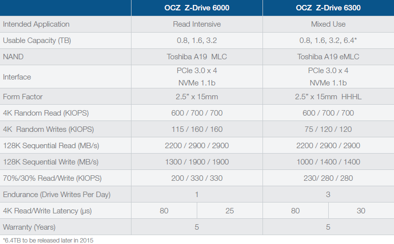 OCZ is currently sampling its NVMe-compliant Z-Drive 6000 and Z-Drive 6300 SFF models to key customers and partners.