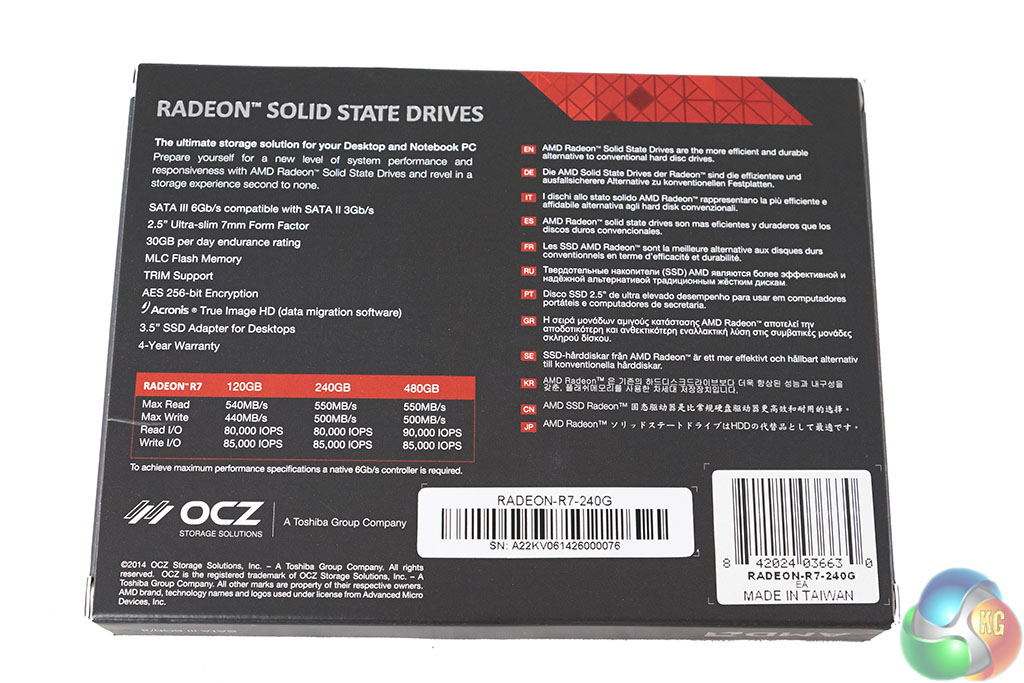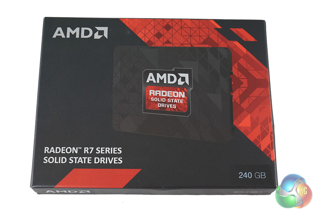 The AMD R7 Series drives arrive in a red and black box, immediately indicative of the AMD brand.