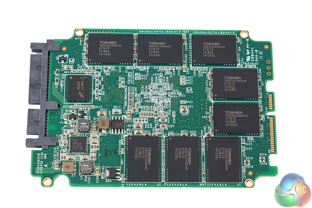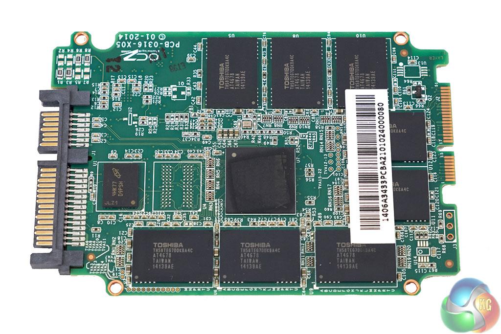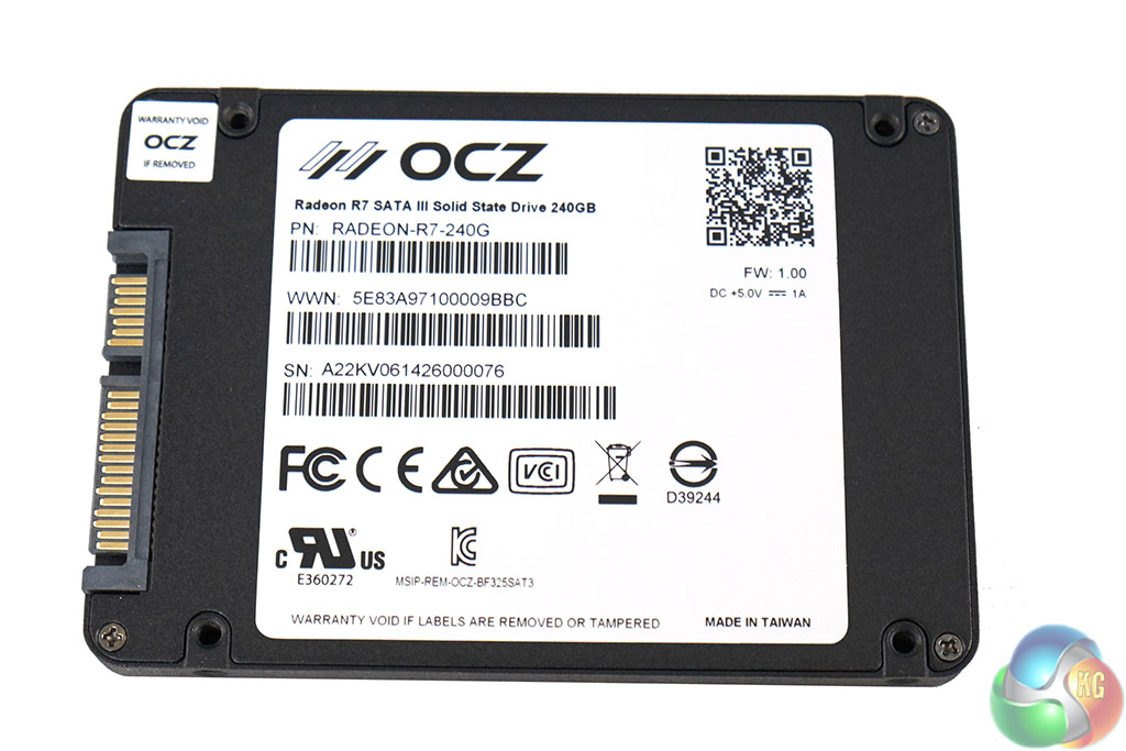 The OCZ Barefoot 3 M00 controller can be seen on the PCB, with the A19nm Toshiba Multi Level Cell (MLC) Flash. AMD claim the drive consumes 0.6 watts when idle and up to 2.7 watts under load. OCZ have clocked the Barefoot 3 controller higher in these AMD units to improve on bandwidth when compared to the Vertex 460. The drive is configured with 7% over provisioning to give the final figure of 240GB.