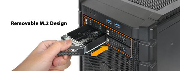 ICY DOCK has equipped the ToughArmour four-bay M.2 enclosure with a simple tool-less installation process which also makes maintenance and upgrading M.2 devices pain-free, with reduced system downtime. The innovative design means that the user can simply place the M.2 SSD in the drive bay, adjust the locking mechanism to the correct length and push the drive down to lock in place.