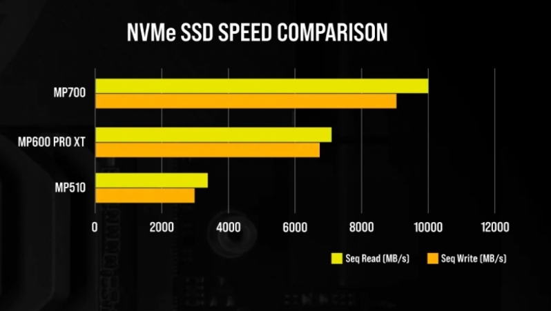 Corsair's upcoming PCIe 5.0 NVMe 2.0 SSD will offer sequential read speeds of up to 10,000MB/s and write speeds of up to 9,500MB/s. That's about 40% faster than Corsair's current flagship PCIe 4.0 SSD. It's known that the MP700 will pack 3D TLC NAND modules and, like most consumer-oriented SSDs, it will come in the 2280 form factor.