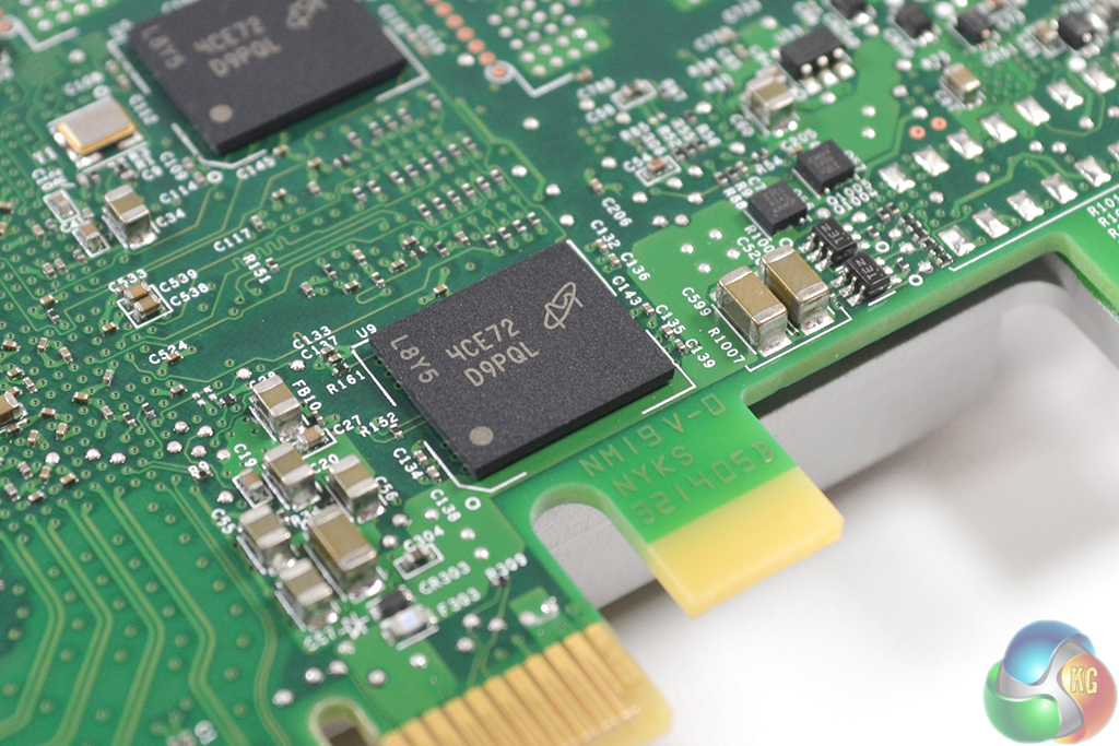 Each of the 14 rear-side NAND packages are of Intel's 20nm MLC variety and have a 16GB capacity. There are a further 18 NAND packages beneath the metal heatsink (that I was unable to safely remove on our sample, due to a tight manufacturing tolerance).