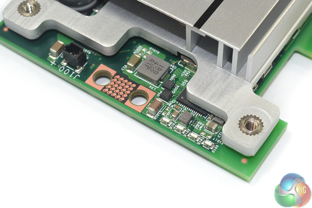 Removing the simple shroud (that is nothing more than a thin strip of metal) gives a look at Intel's cooling configuration for the SSD 750. Intel makes no hesitation in pointing out that this drive has favoured performance over low power consumption, so with the maximum energy draw sat at 25W, the cooling system is of critical importance.