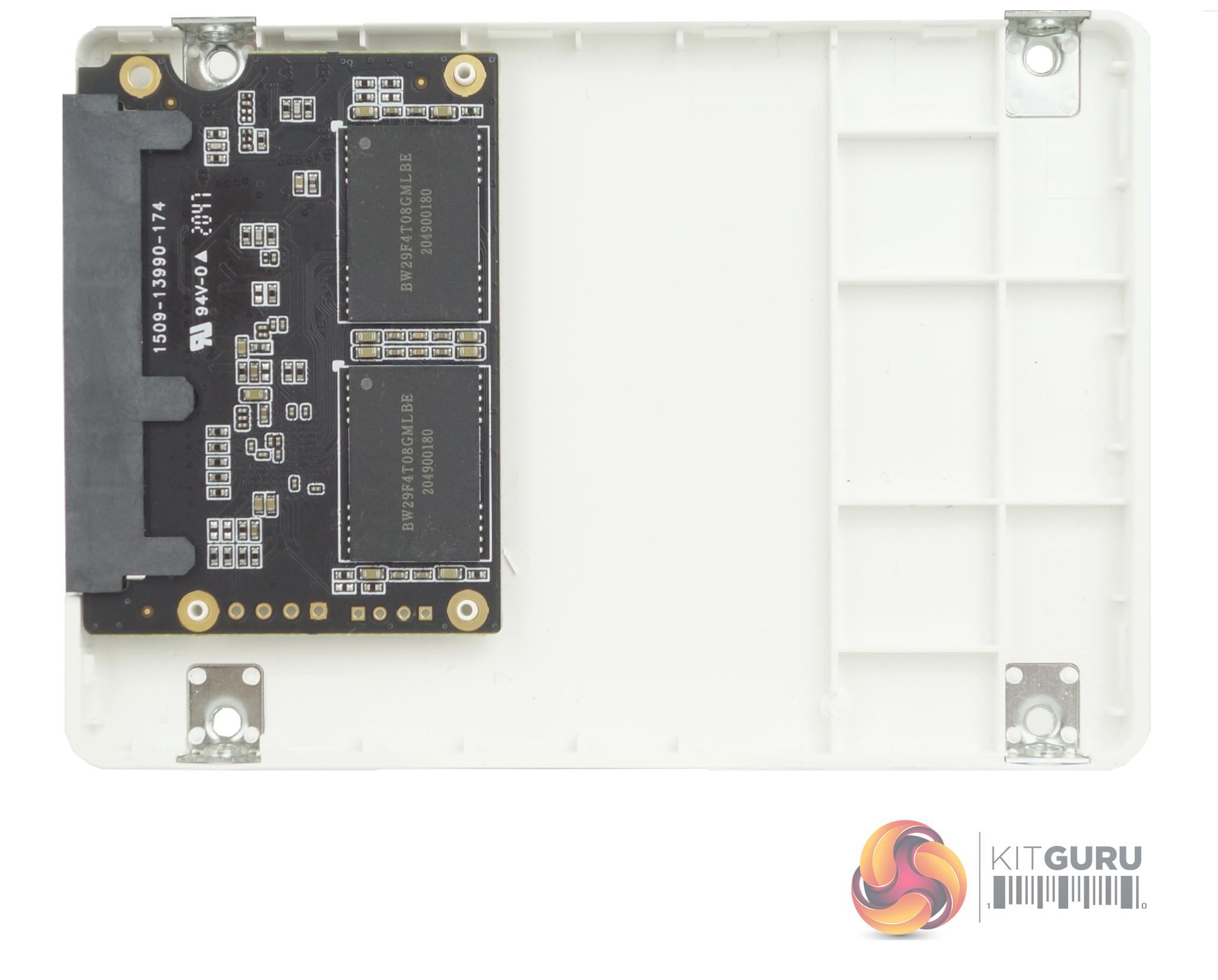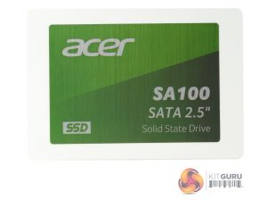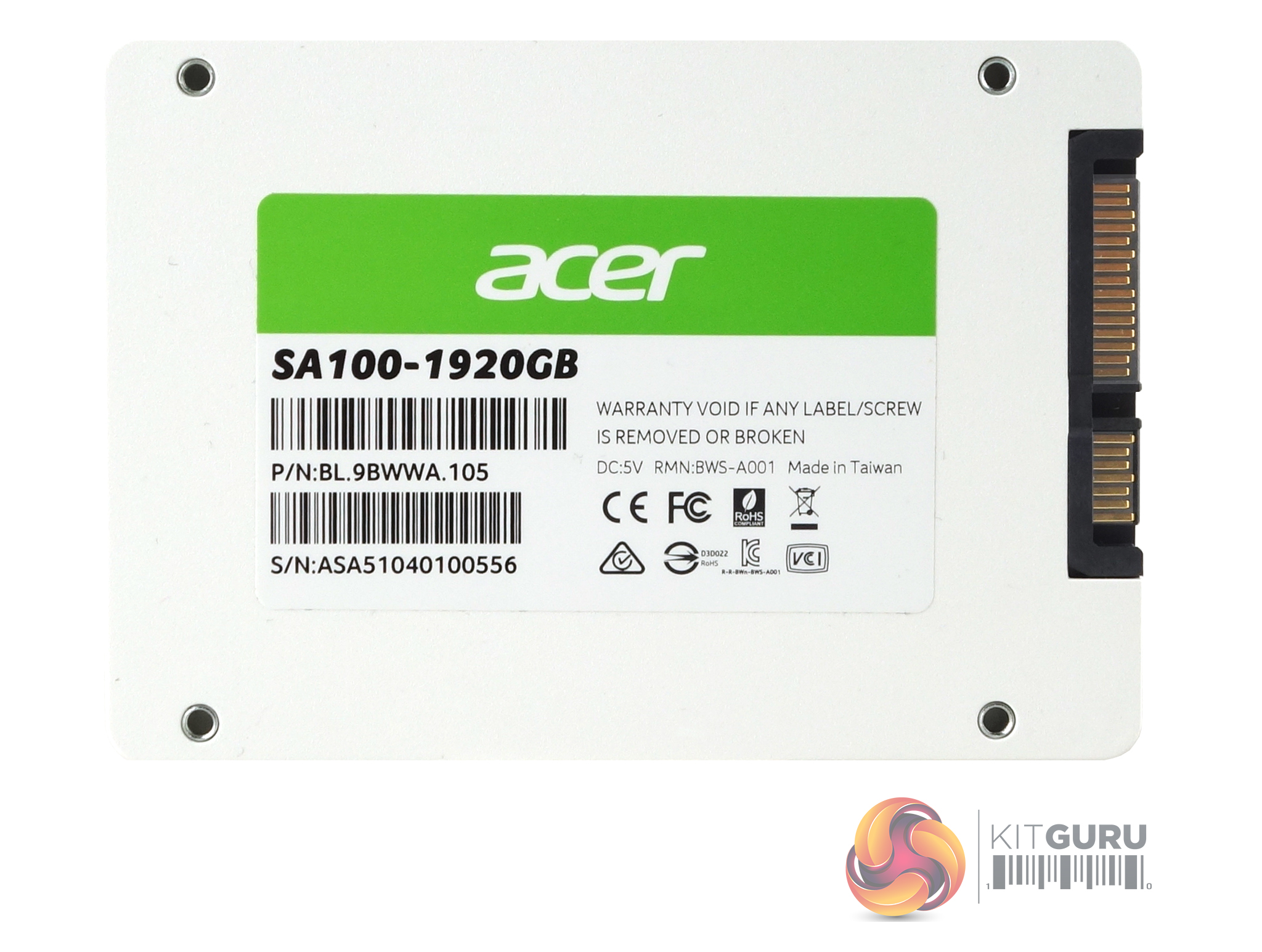 The Acer SA100 uses a standard 2.5in, 7mm format and is housed in a plastic enclosure that has four metal plates threaded for mounting screws.