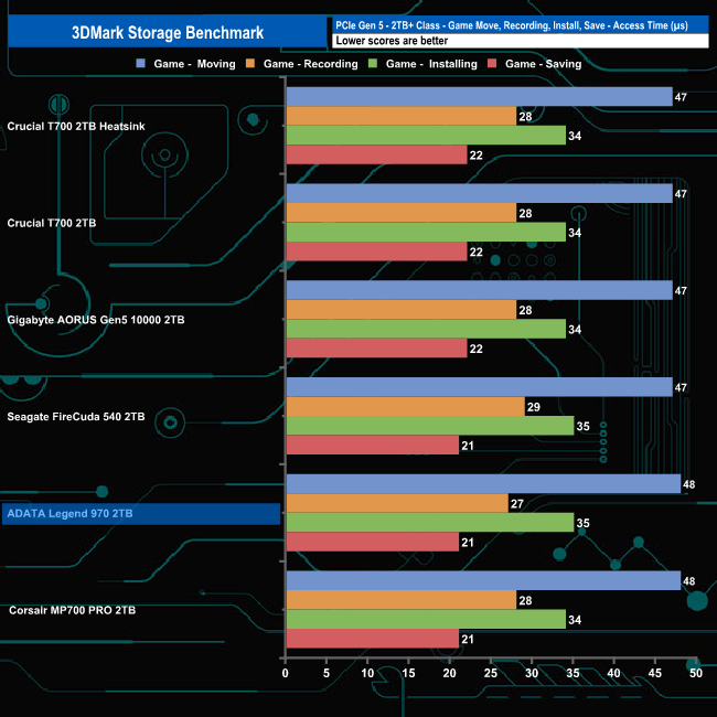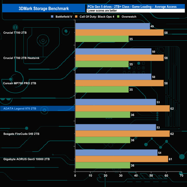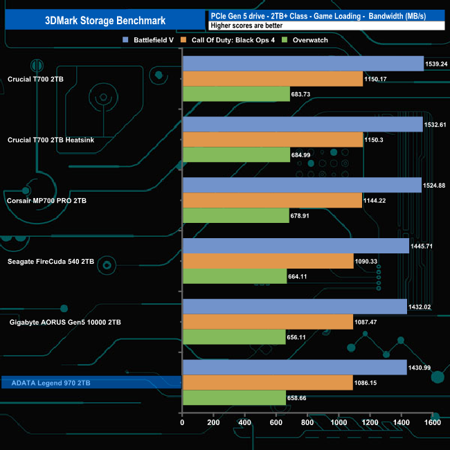 In 3DMark’s Storage Test, the 2TB Legend 970 had an average game loading bandwidth figure for the three games ( Battlefield V, Call Of Duty Black Ops 4 and Overwatch) of 1,058MB/s with an average access time of 50.3µs.
