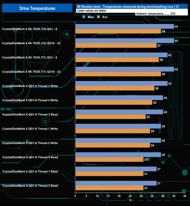 We took note of the drive’s temperature during some of our benchmarking runs.