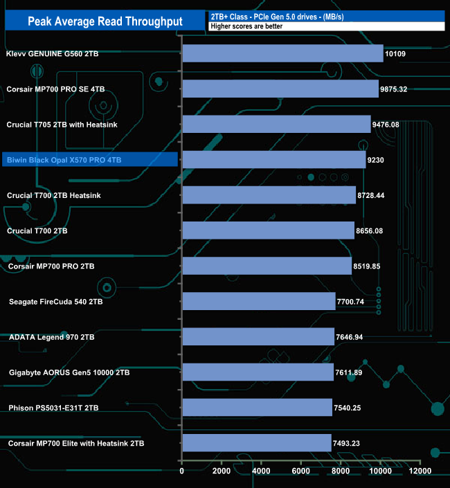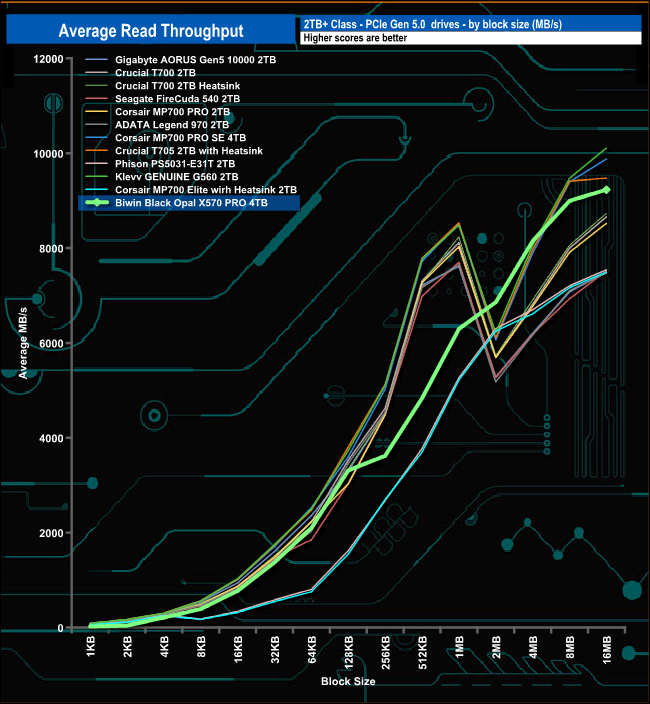 Even though the peak read result is nowhere near the official maximum figure of 14,000MB/s, it's still good enough to place the drive in the fourth spot on the results table.