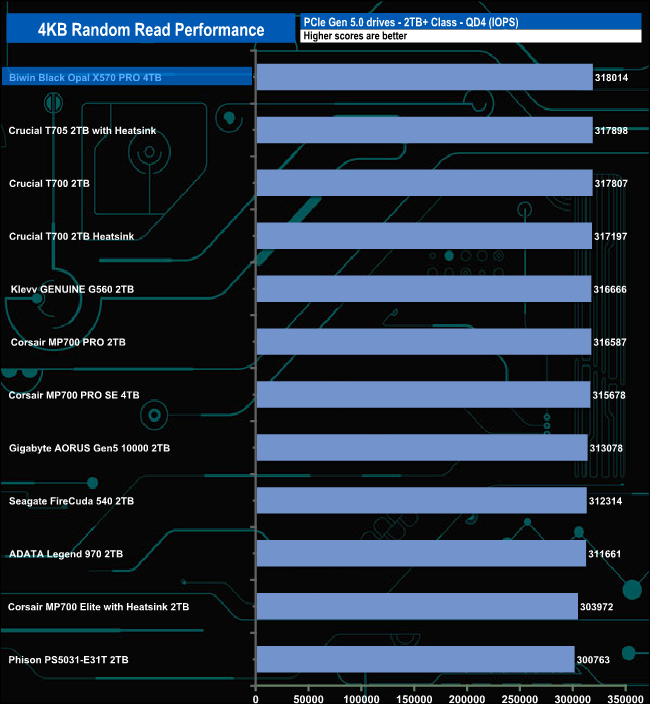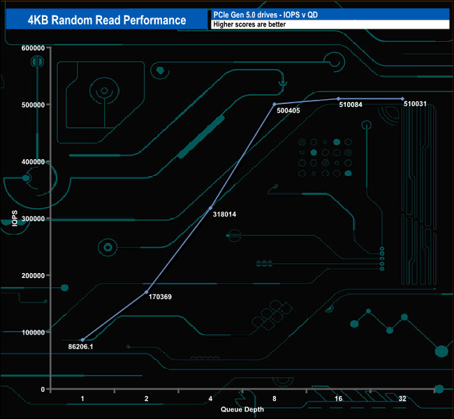 We used CrystalDiskMark 8‘s custom settings to test the 4K random read performance of the drive through a range of queue depths. The setup for the tests is listed below.
