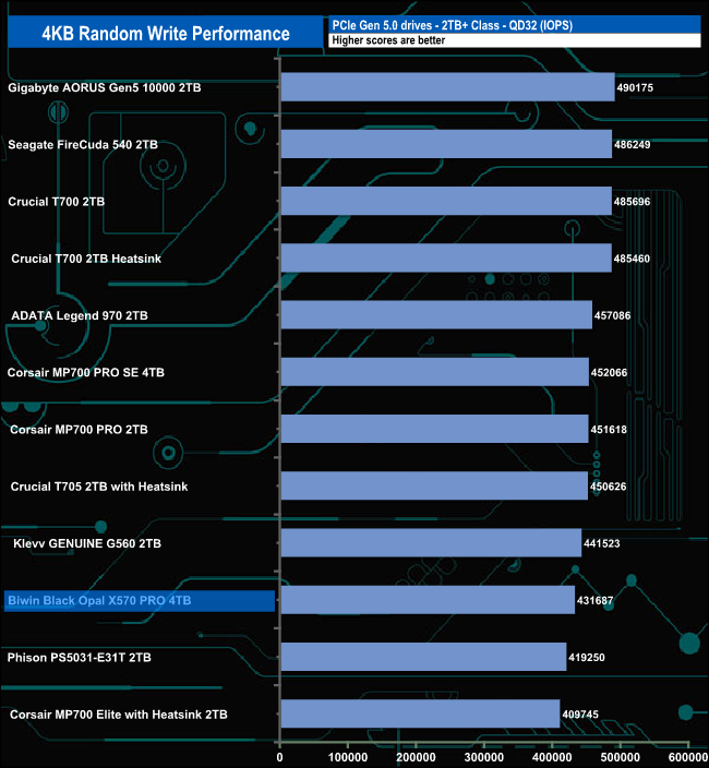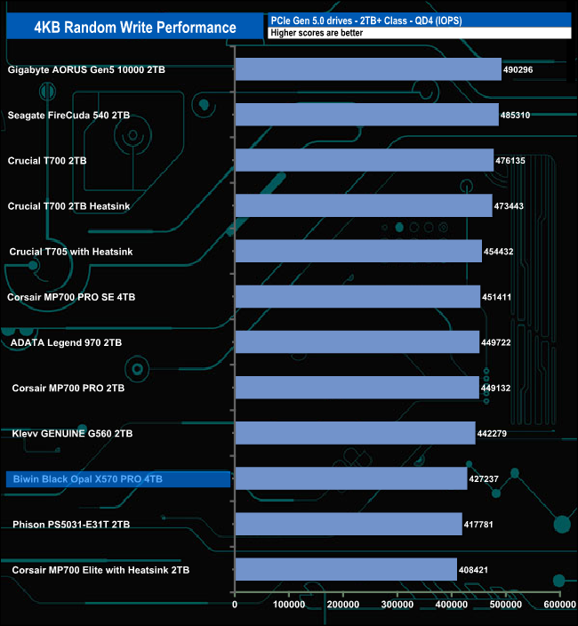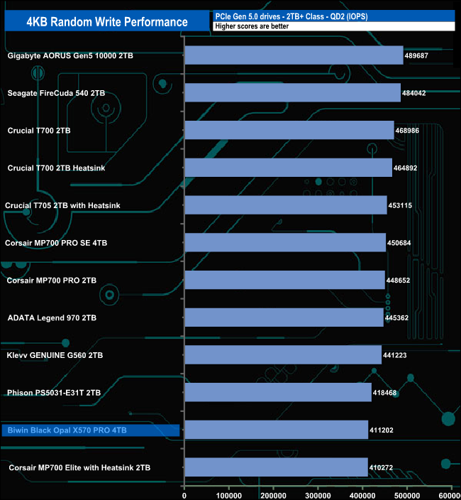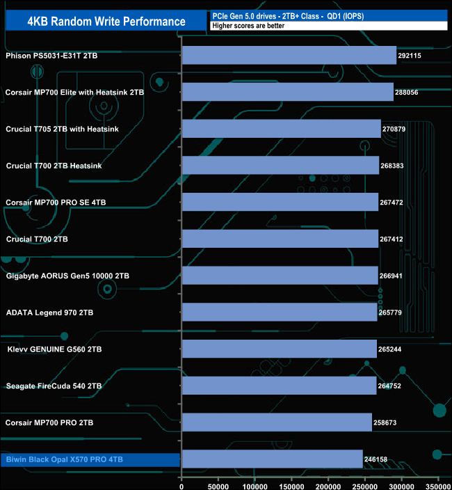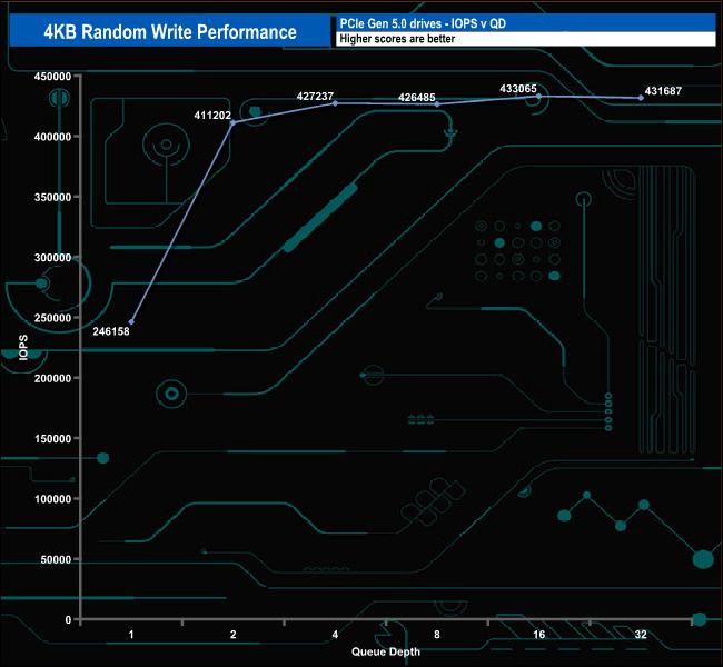 We used CrystalDiskMark 8‘s custom settings to test the 4K random write performance of the drive through a range of queue depths. The setup for the tests is listed below.