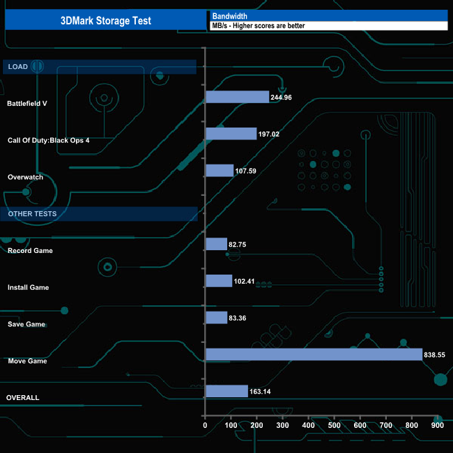 The 3DMark Storage Benchmark uses traces recorded from popular games and gaming-related activities to measure real-world gaming performance.