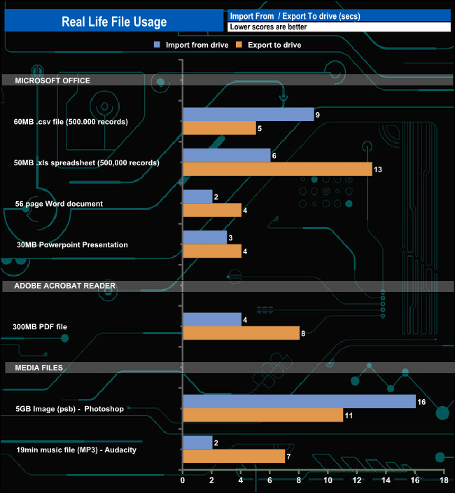 We also tested the time it took to import and export a mix of files from/to the EX400U into various programs.