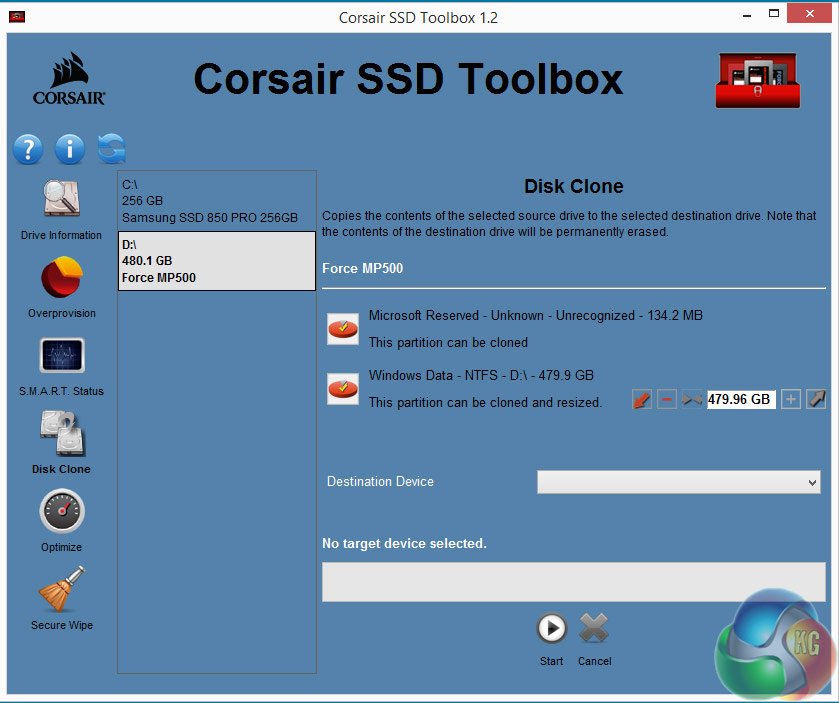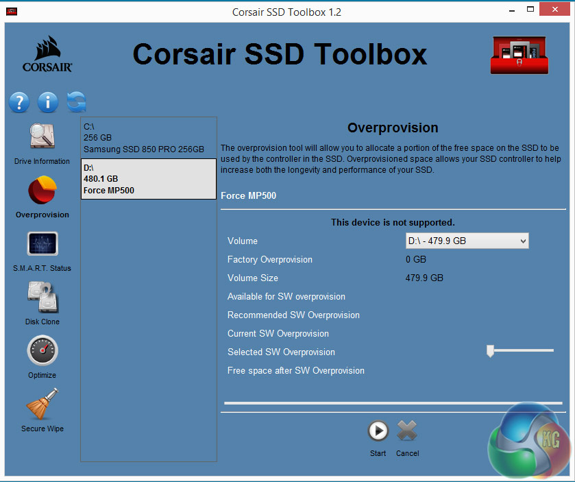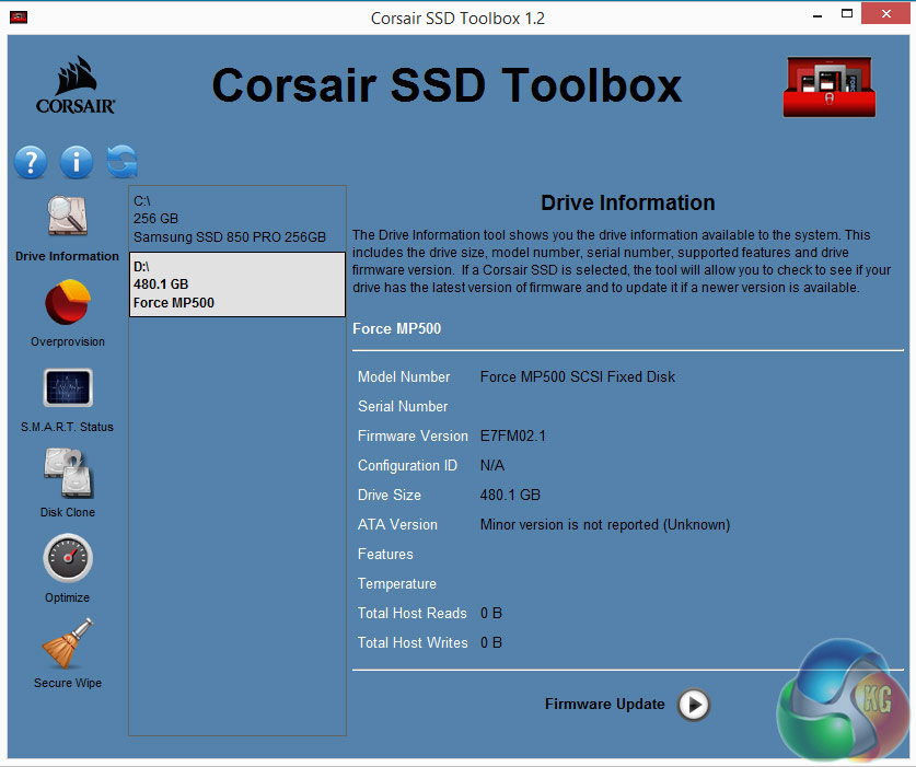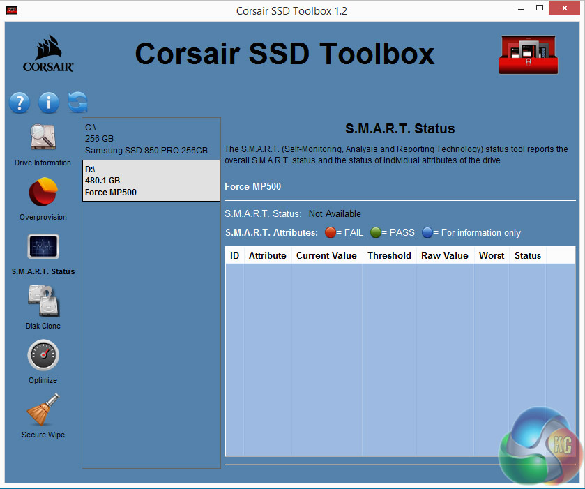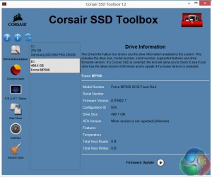 Corsair's SSD management utility is called SSD Toolbox. At the time of writing, we used the latest 1.2.4.7 version of Toobox but it's in desperate need of a refresh as it hardly provided any details for the drive. It couldn't provide the drive S.M.A.R.T details, doesn't allow for changes to the Trim commands or over provisioning, or even securely erase the drive.